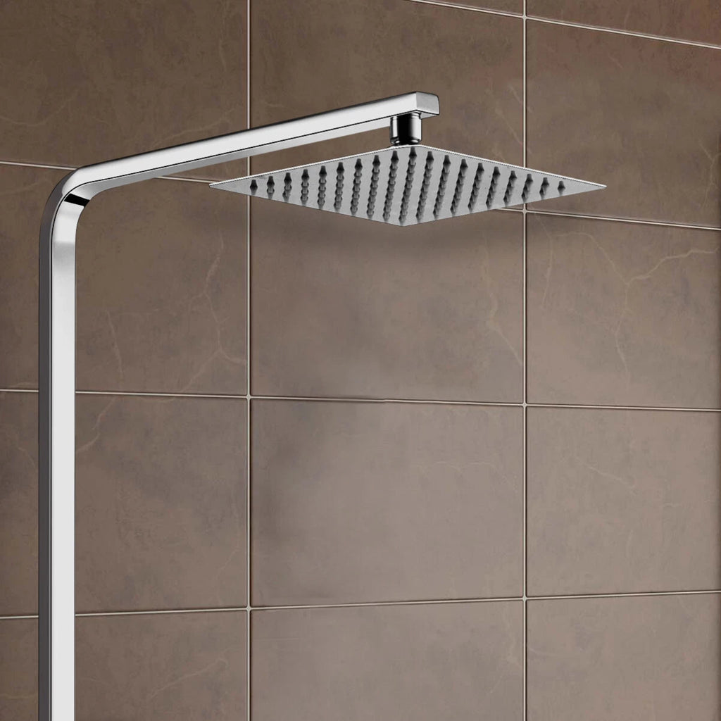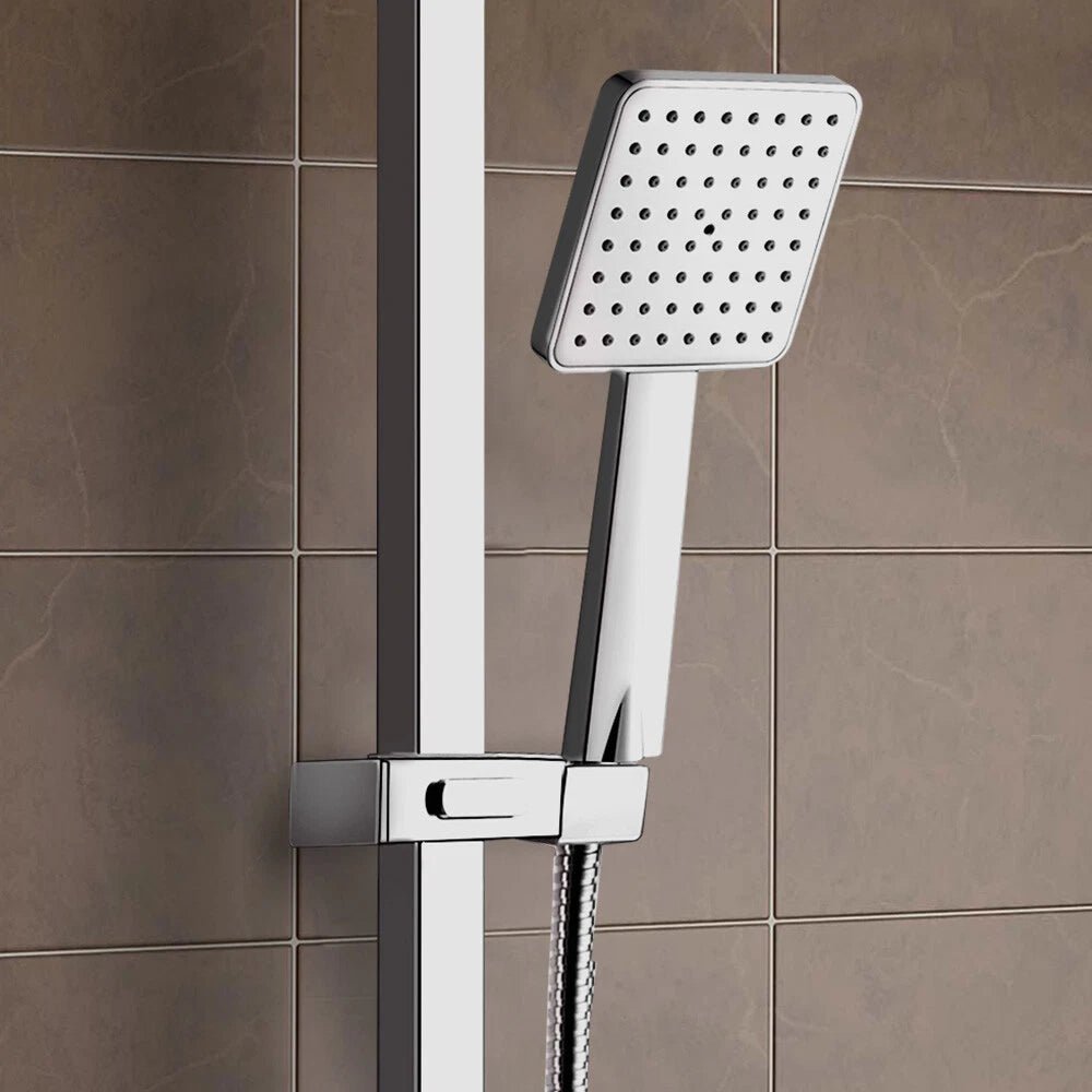 Aquari Edor 3-Way Chrome Thermostatic Shower Set – Twin Square Head, Bath Filler Compatible, Adjustable Riser