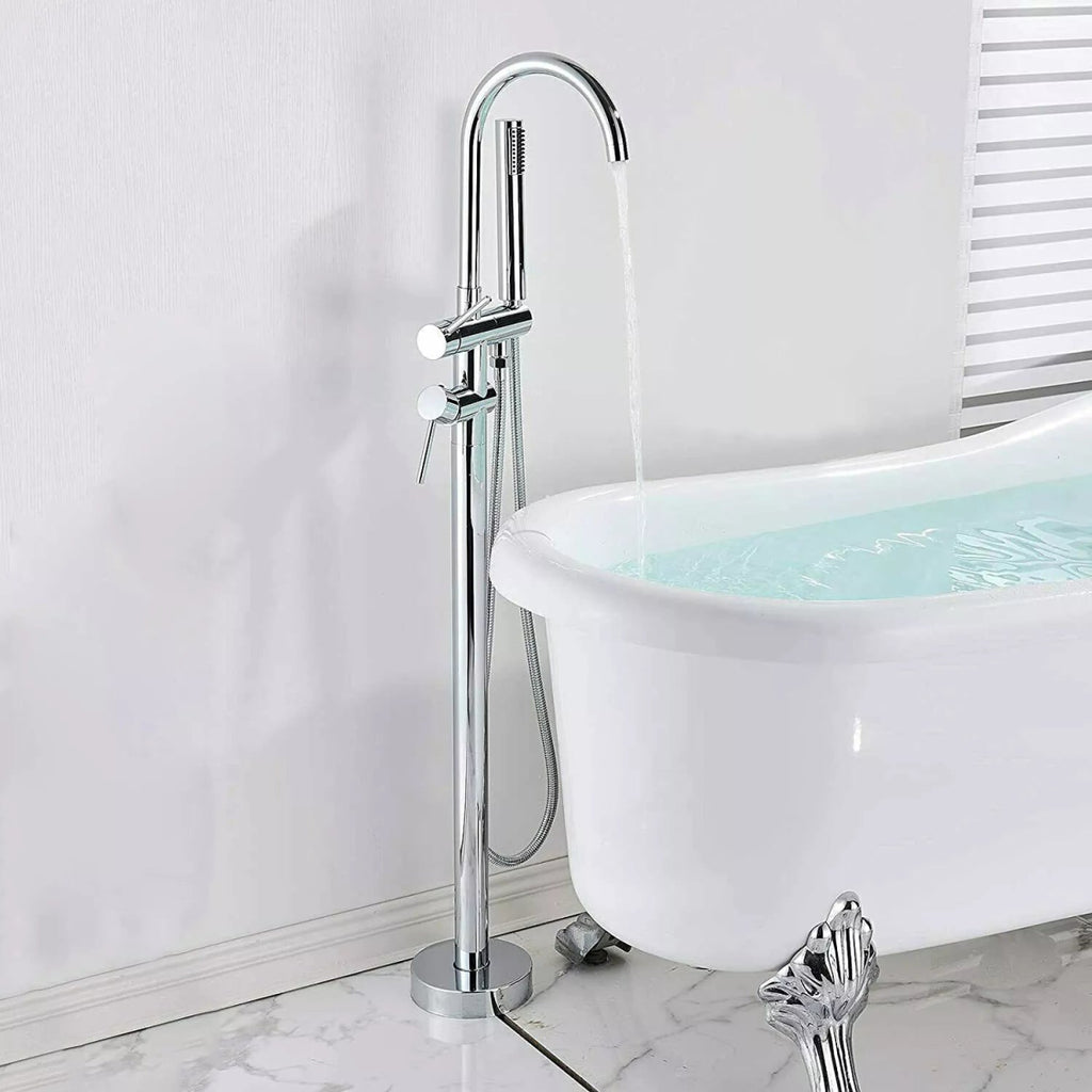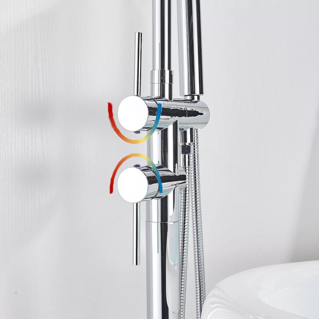 Upgrade your bathroom with the Drexon Chrome Freestanding Bath Mixer Tap, designed with both form and function in mind. Crafted from durable SUS 304 stainless steel, this mixer tap features a 360° swivel spout, allowing flexible use both inside and outside the bathtub. The dual-handle controls let you easily switch between filler spout and handheld shower functions, catering to your preferred bathing style.