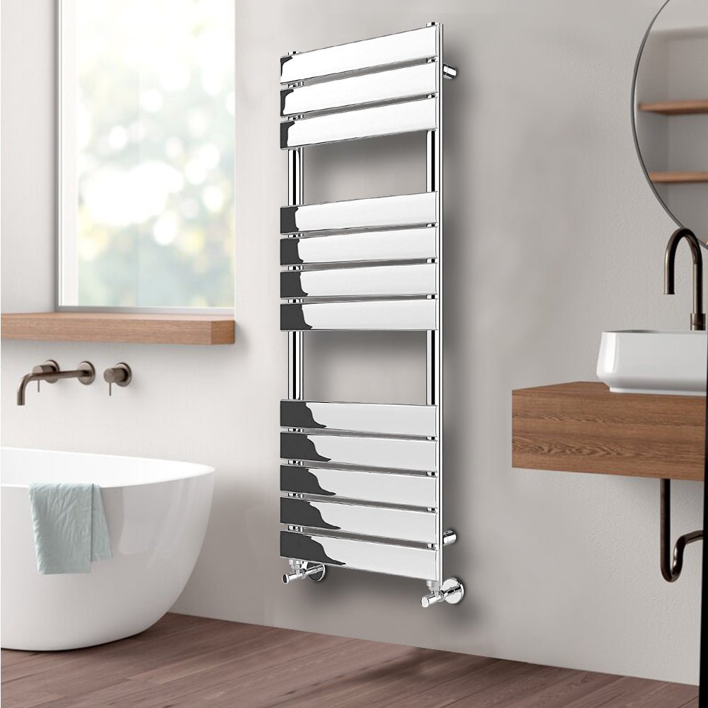 Valeno 1200x450mm Chrome Heated Towel Rail – Flat Panel, Vertical Mount, Polished Finish