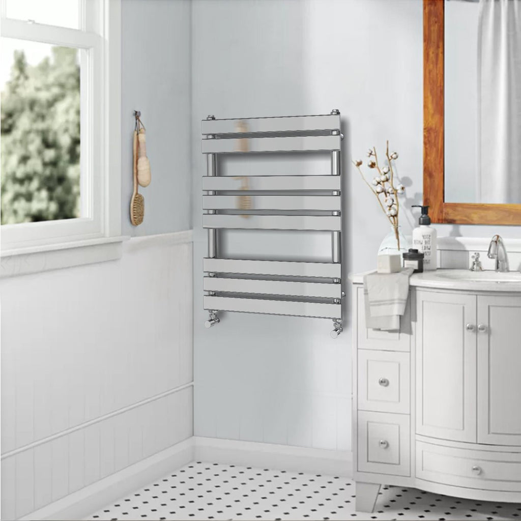 Valeno 800x600mm Chrome Heated Towel Rail – Flat Panel, Vertical Mount, Polished Finish