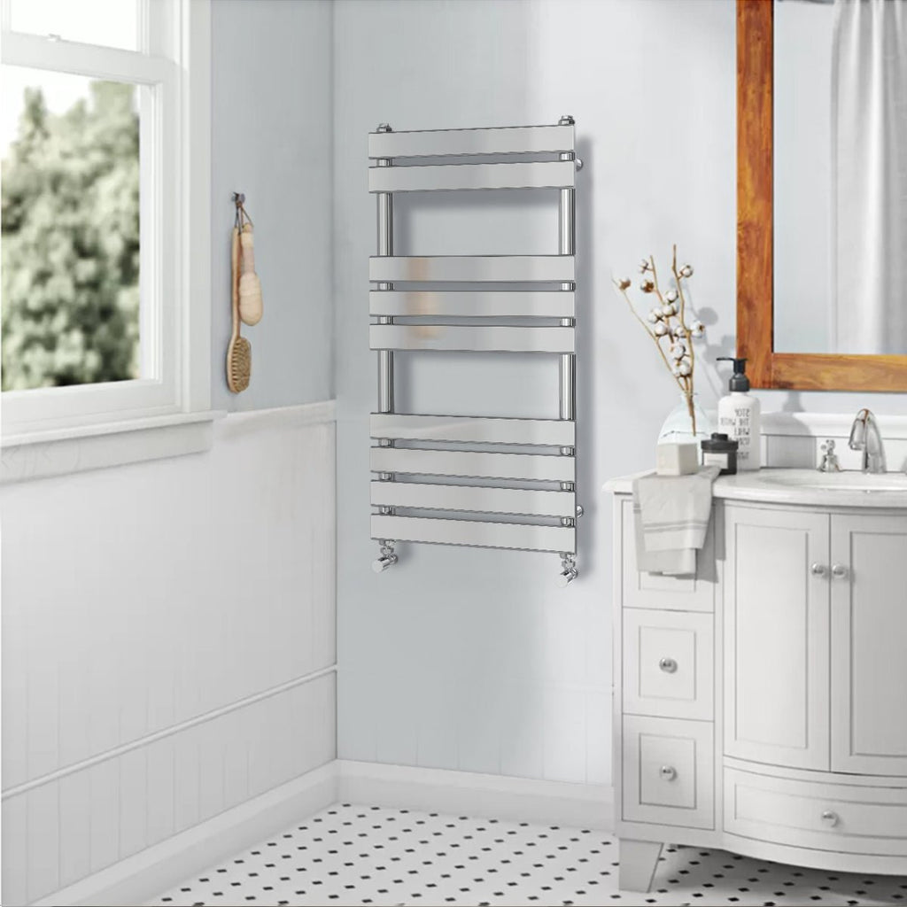 Valeno 950x500mm Chrome Heated Towel Rail – Flat Panel, Vertical Mount, Polished Finish
